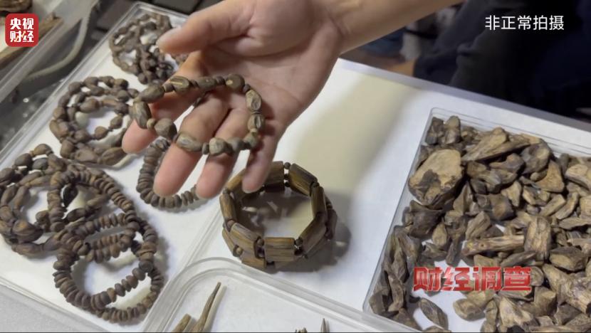 面对“熟人”,负责人坦言手串是用“白木”制成——即沉香采收后剩下的无香无油的木质部分,价值极低。